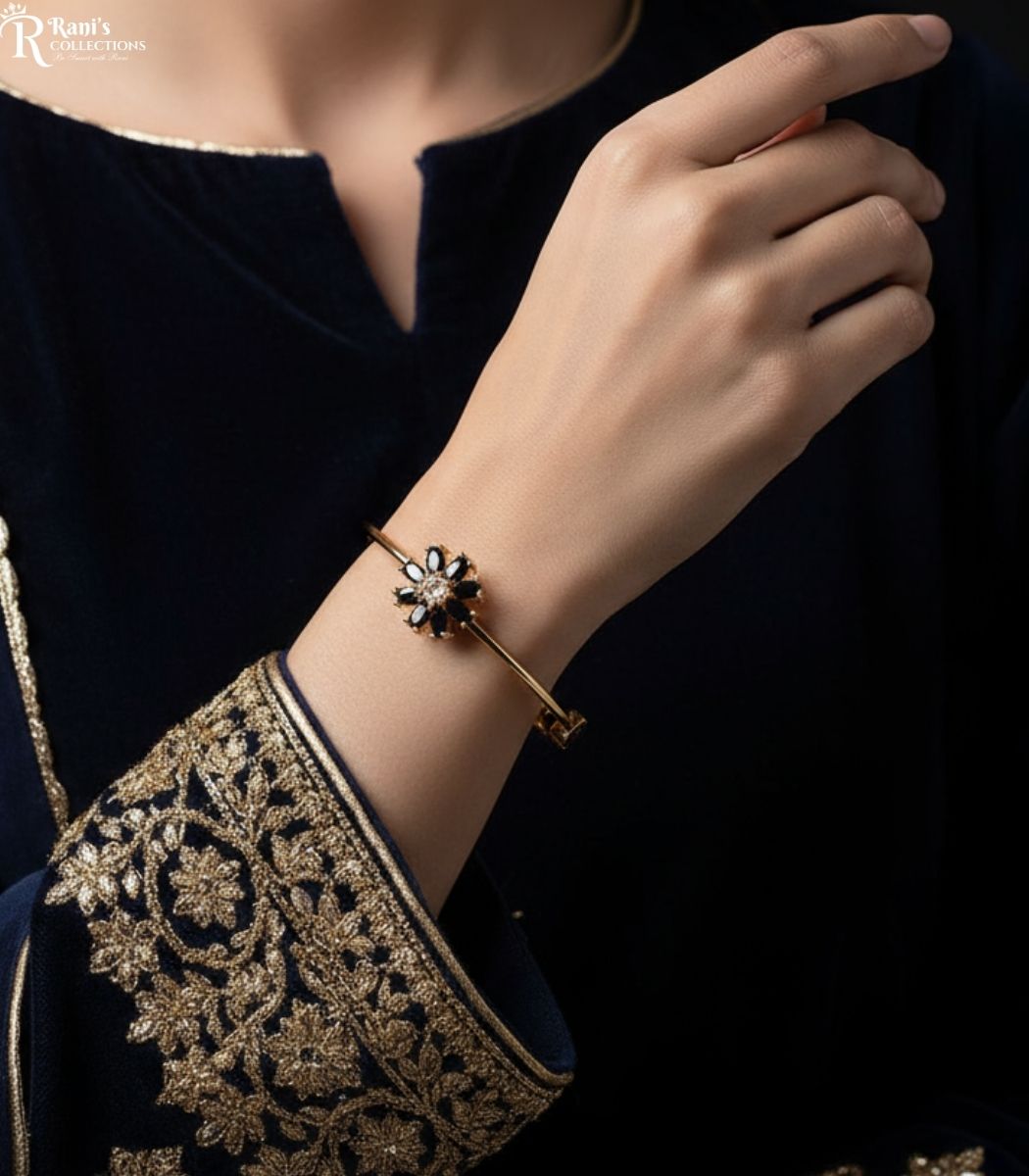 Refined and radiant, this Black Patel Adjustable Bangle Set blends rich black enamel tones ⚫ with a lustrous gold‑tone finish ✨ for a look that’s equal parts classic and chic. The intricate patel design adds a touch of cultural artistry, while the adjustable fit ensures comfort and ease for any wrist.