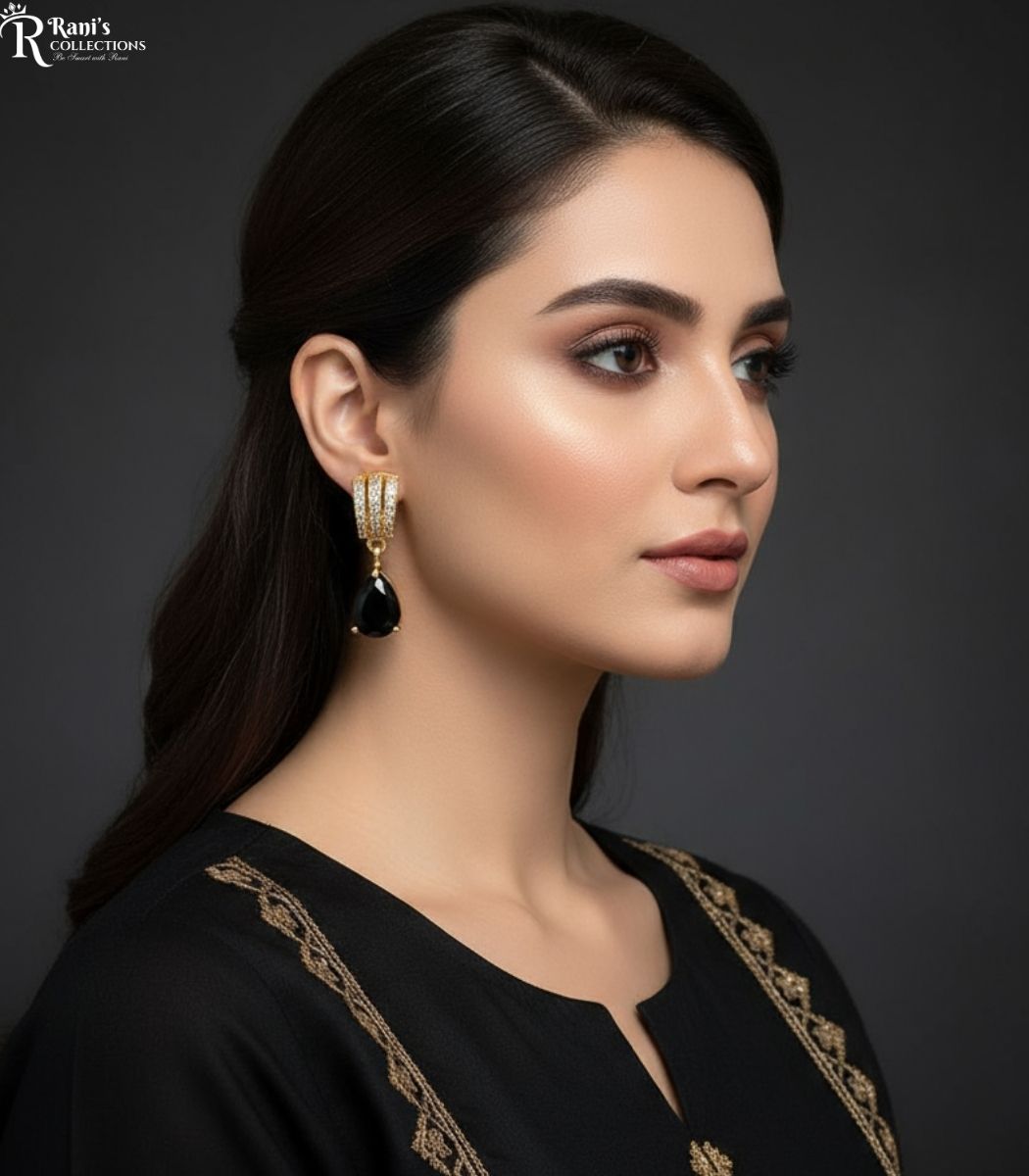 These Black Stone Crystal Dangle Earrings are designed to turn every glance into admiration. Featuring deep black stones framed by dazzling clear crystals 💎, they catch light with every movement while adding a hint of drama and sophistication to your look.