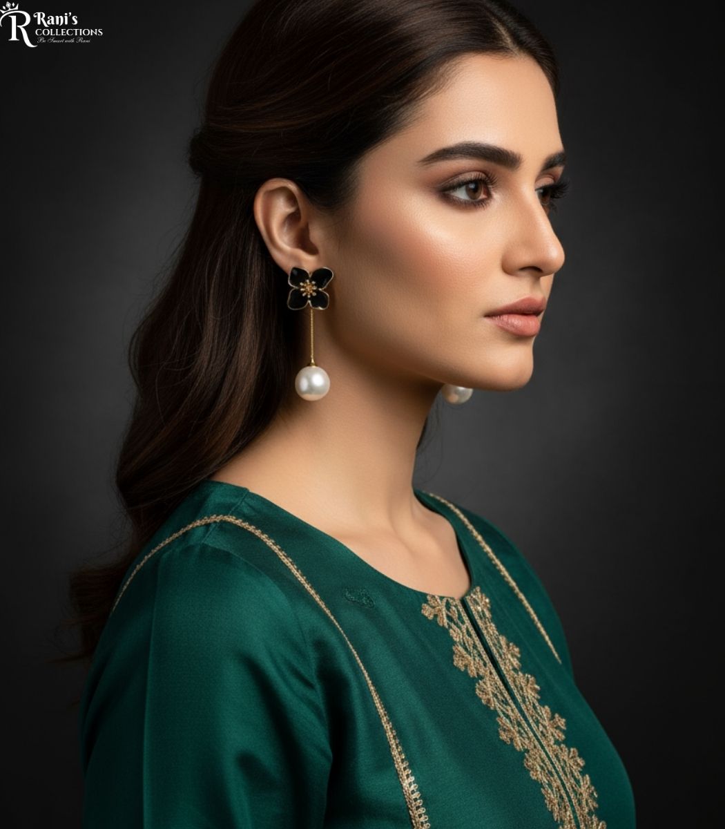 These Black Flower Pearl Drop Earrings embody effortless sophistication — a gorgeous pairing of glossy black floral motifs 🌺 with luminous pearls 🤍. The contrast between the bold black petals and the gentle pearl drop creates a design that’s equal parts classic and contemporary, perfect for making any outfit stand out.